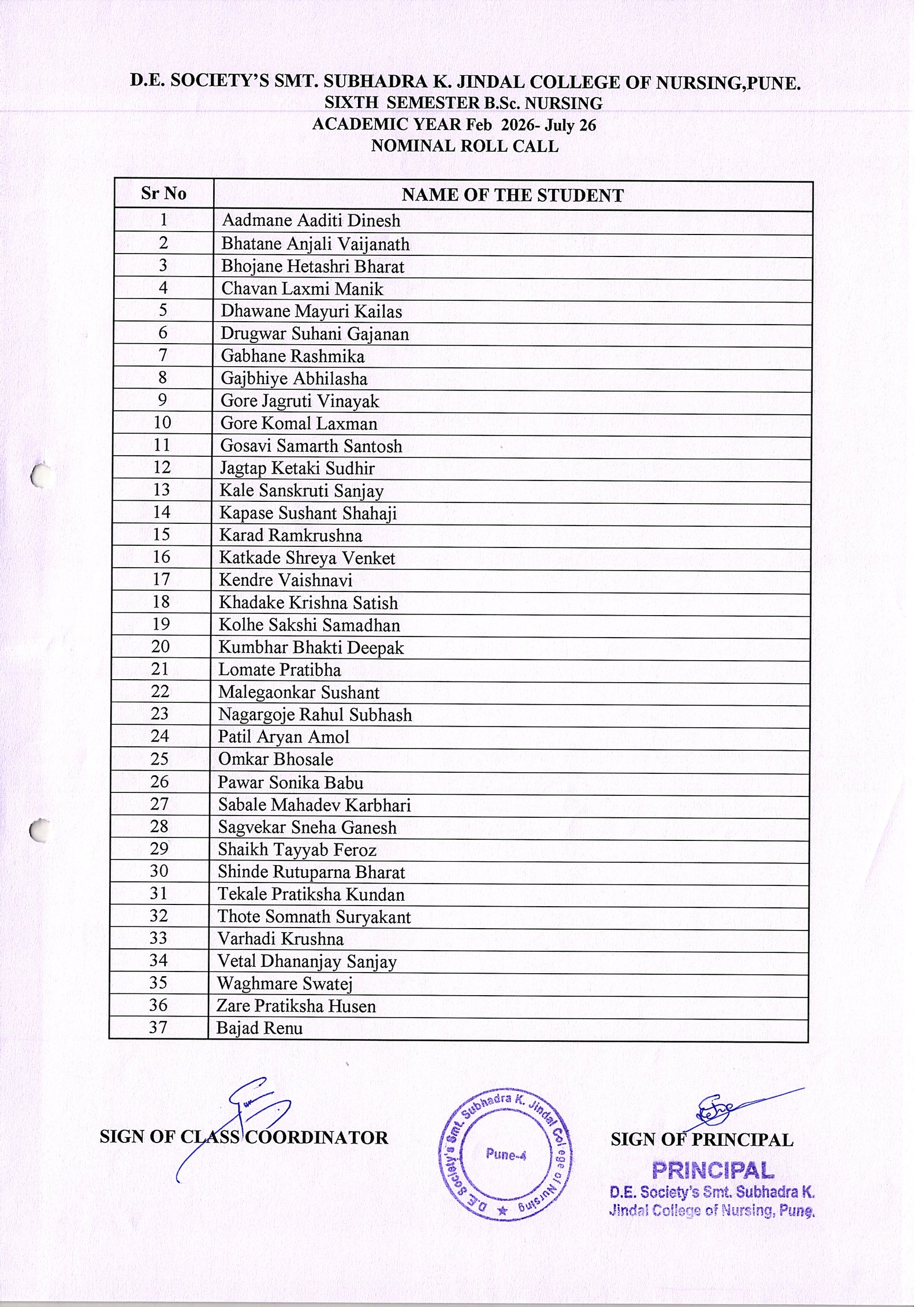 Semester VI (February to July 2026)